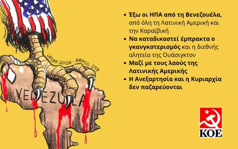 Η νέα χρονιά ξεκινά με την άθλια στρατιωτική επίθεση των ΗΠΑ κατά της Βενεζουέλας και την απαγωγή του προέδρου της χώρας Νικολάς Μαδούρο και της συζύγου του Σίλια Φλόρες. Ο απρόκλητος βομβαρδισμός στρατιωτικών εγκαταστάσεων και πολιτικών υποδομών, με άγνωστο μέχρι στιγμής αριθμό θυμάτων, και η γκανγκστερική απαγωγή του επικεφαλής μιας ανεξάρτητης χώρας, συνιστούν ένα νέο ποιοτικό άλμα στην κατάλυση κάθε κανόνα του διεθνούς δικαίου, και μια κατάφωρη παραβίαση της κυριαρχίας και ακεραιότητας της Βενεζουέλας. Συνιστούν ταυτόχρονα και μια πρώτη υλοποίηση όσων επιτάσσει η νέα «Στρατηγική Εθνικής Ασφάλειας» των ΗΠΑ, που θεωρούν ότι τους ανήκει ολόκληρη η αμερικανική ήπειρος…